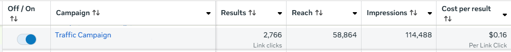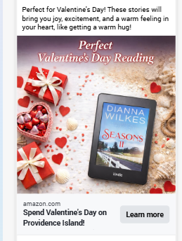 Author Kathi Daley. Below is a screenshot of a recent Facebook ad campaign for Kathi Daley. It received 2,766 link clicks, 58,864 Reach, and 114,488 impressions. The cost per click was 16 cents.